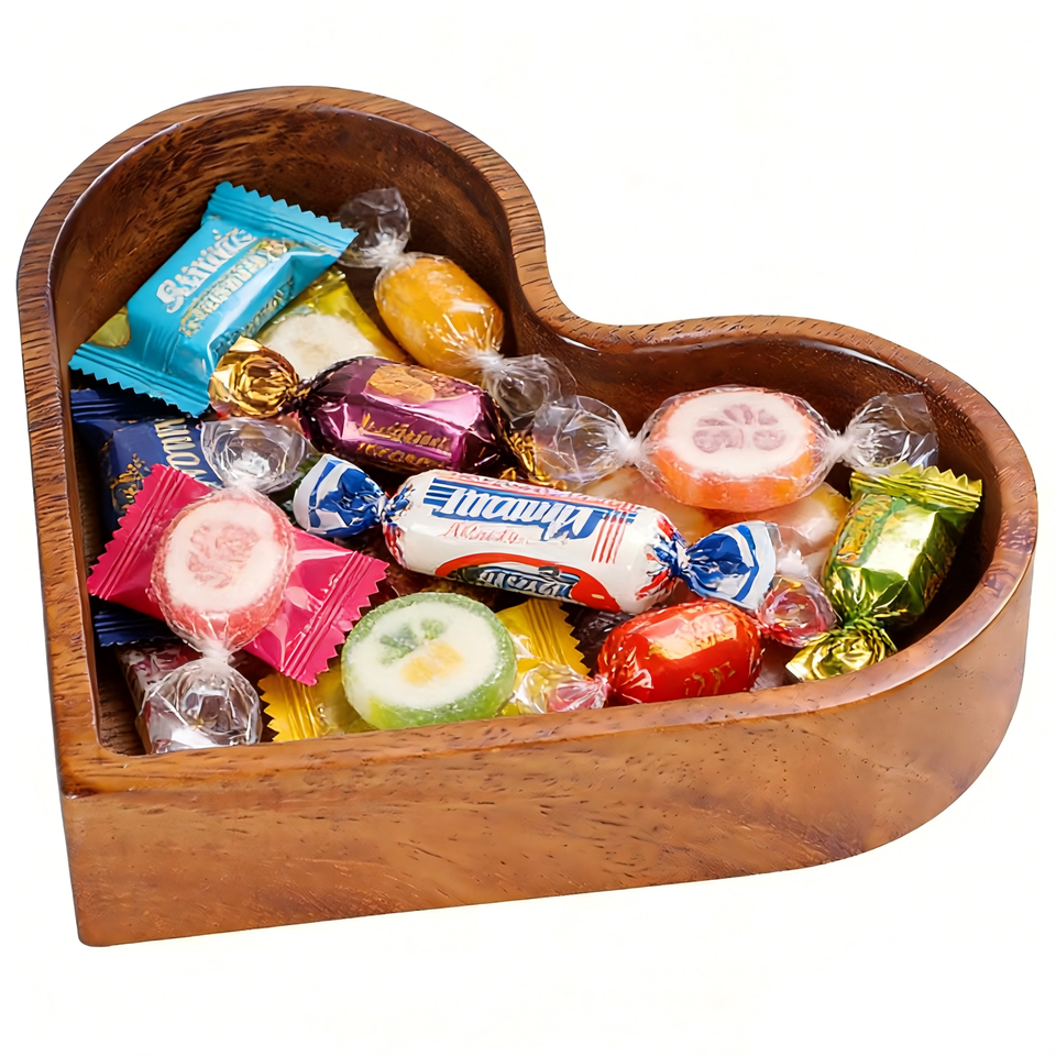 Platos de Madera Personalizados con Logotipo, Bandeja de Dulces en Forma de Corazón, Platos Apilables de Madera Sólida