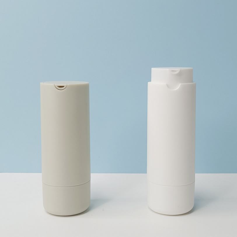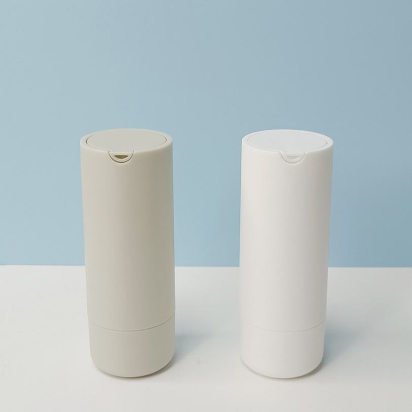 Botella Airless Gris Blanca con Etiqueta de Logotipo Personalizado, Botella de Loción de 30 ml y 50 ml con Tapa, Envase Vacío para Cosméticos y Cuidado de la Piel