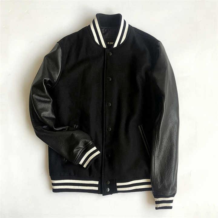 Logotipo personalizado Carta Hombre Chaqueta Cálido Invierno Mangas de cuero Varsity Chaquetas Bordado Impreso logotipo