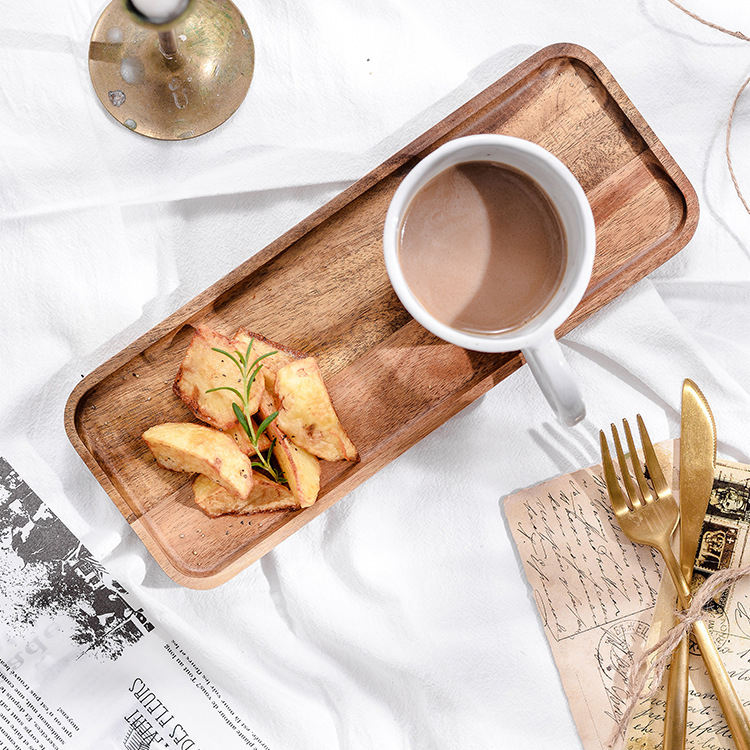 Bandeja Rectangular de Madera de Acacia y Roble Personalizable con Logotipo, MOQ Bajo, Muestra Gratuita, para Servir Alimentos, Café y Desayuno