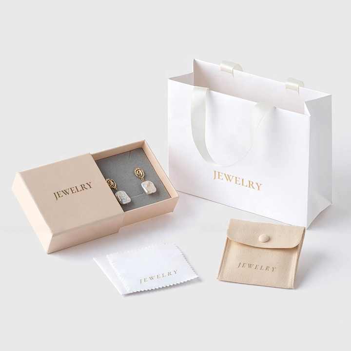 Caja de Lujo de Cartón para Joyería con Logo Personalizado para Collar, Pendientes y Anillo, Estuche con Bolsa de Papel
