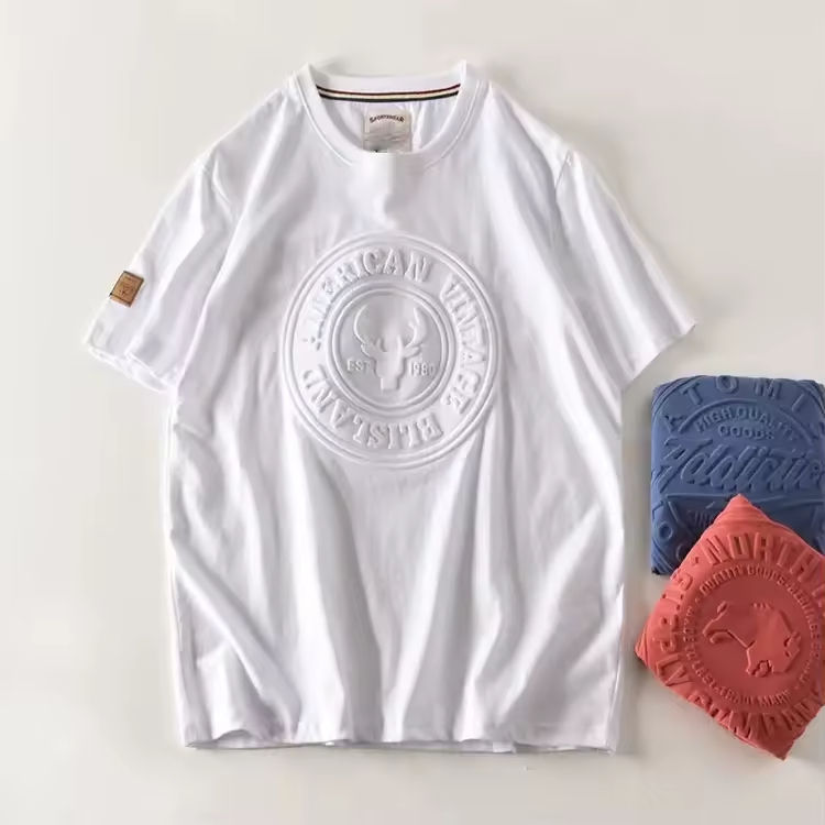 Camisetas con Logotipo Personalizado en Relieve, Color Liso, Algodón Puro, Tela Suave de 180gsm-280gsm, Camiseta de Algodón Peinado para Hombre