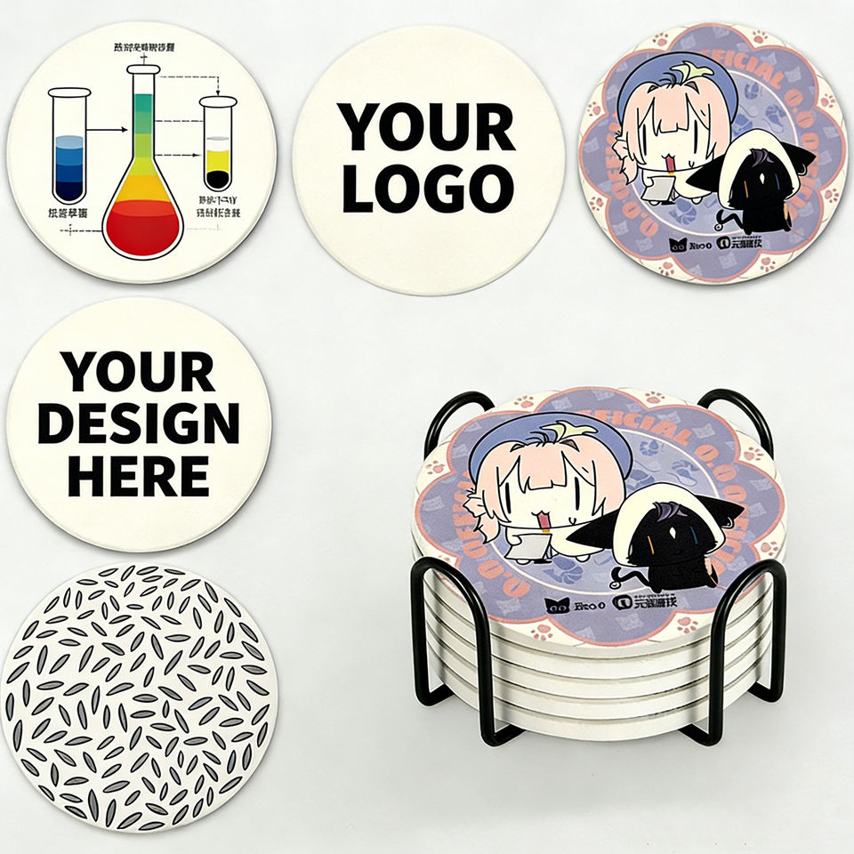 Posavasos de cerámica personalizados con logo, cuadrados o redondos, con aislamiento térmico de mármol, para sublimación, en blanco, para bar, cerveza, bebidas, café.