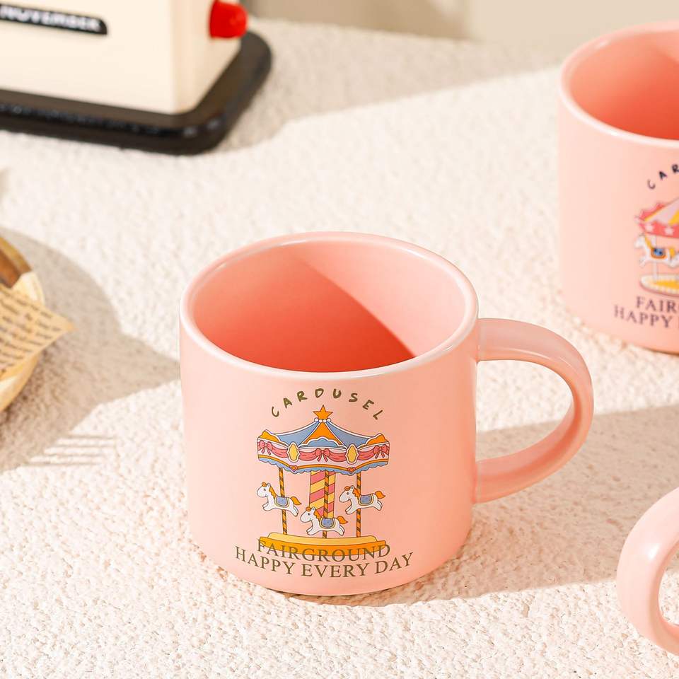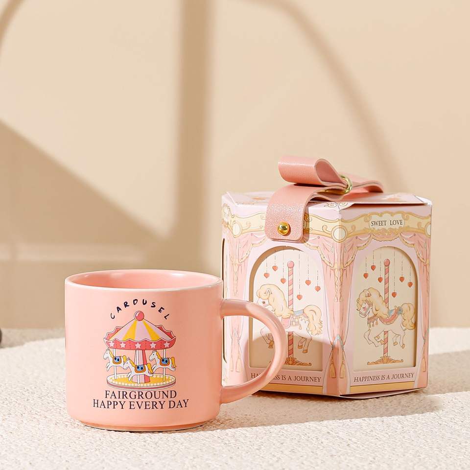 Taza de Leche con Logotipo Personalizado, Vaso de Agua para Desayuno, Taza de Cerámica Rosa con Diseño de Caballo, Taza Térmica