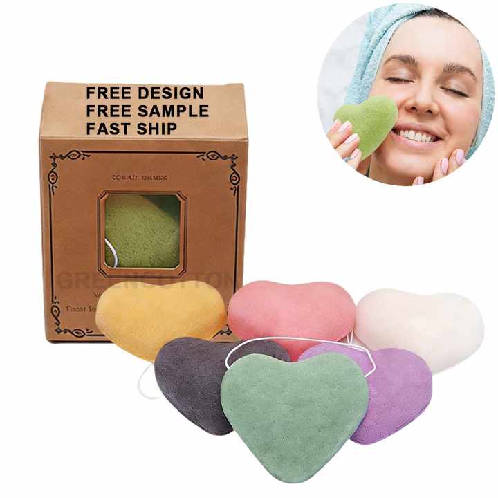 Esponja de Konjac EXFOLIANTE SUAVE y natural con logotipo personalizado, limpiador facial para limpieza natural y respetuoso con el medio ambiente