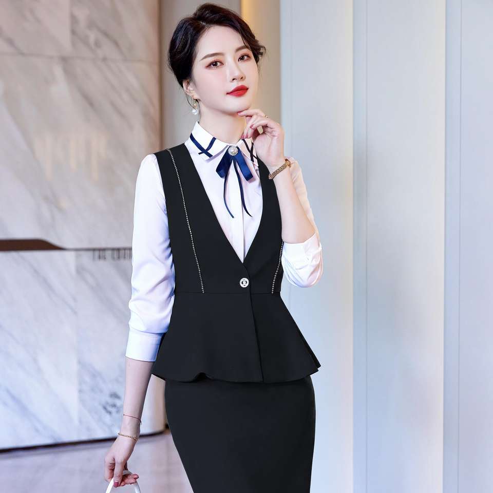 Logotipo personalizado OEM de alta calidad pequeño MOQ señoras traje trajes de mujer chalecos chaleco falda camisa chaleco