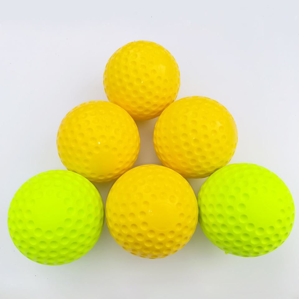 Logotipo personalizado PU Material amarillo brillante máquina de lanzamiento lanzando Bola con hoyuelos corcho Irlanda