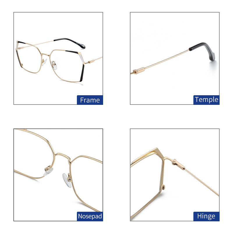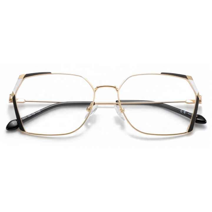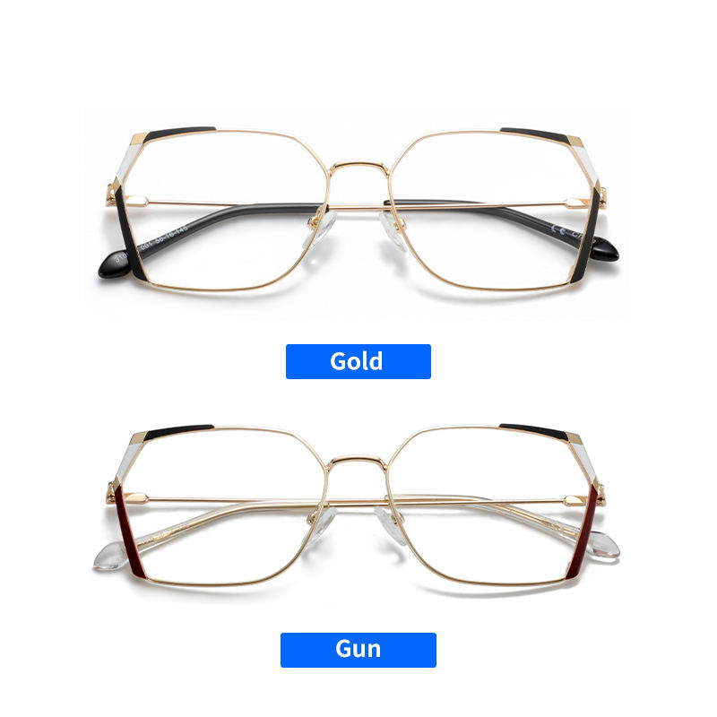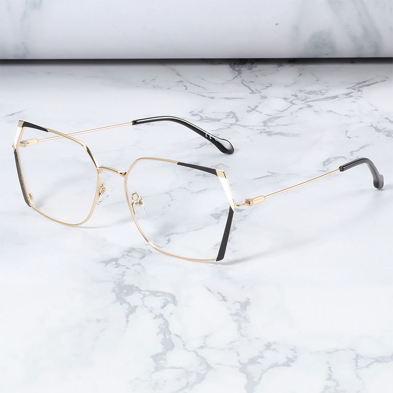 Logotipo personalizado polígono y estilo irregular lentes de resina metal mujer monturas gafas ópticas gafas