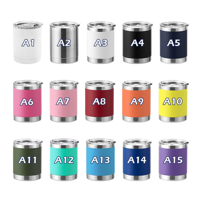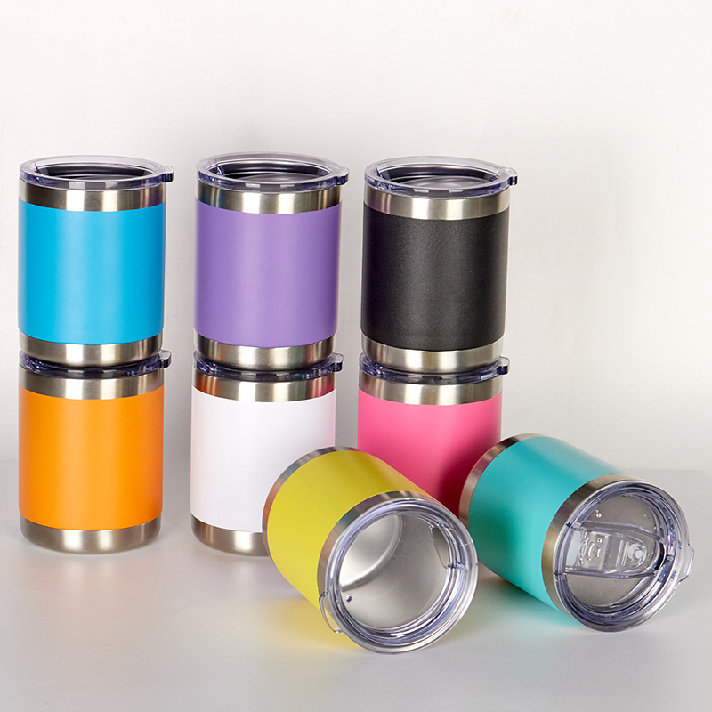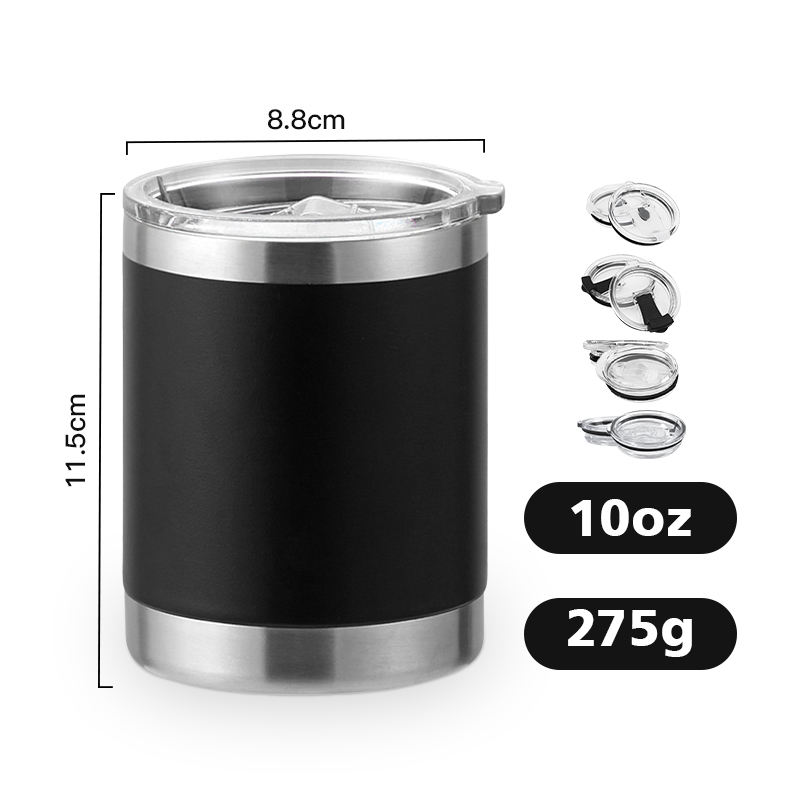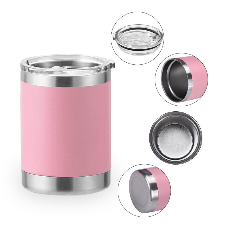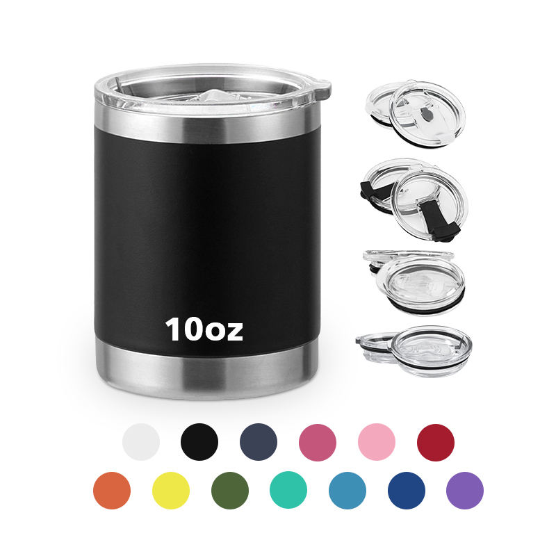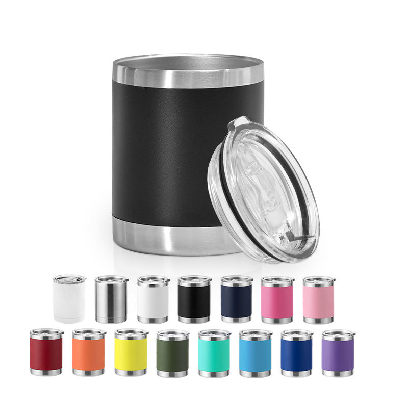 Logotipo personalizado con recubrimiento en polvo 10oz cóctel de doble pared con aislamiento de vacío de acero inoxidable baja vaso taza con tapa