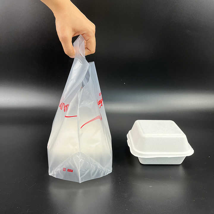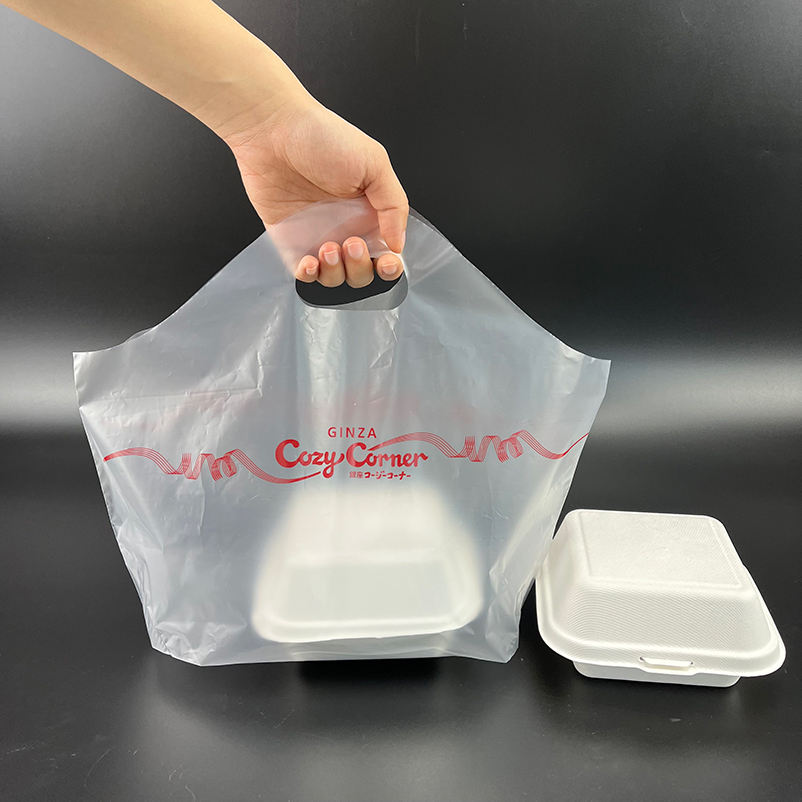 Bolsa de transporte para llevar comida, Asa de plástico ondulado con logotipo personalizado para restaurante