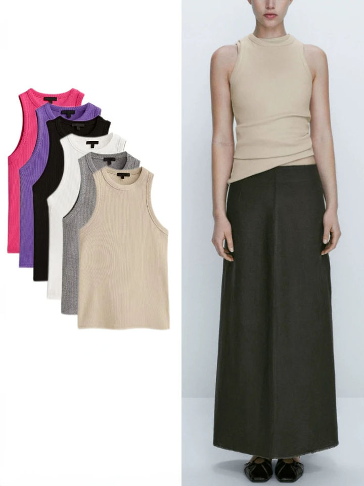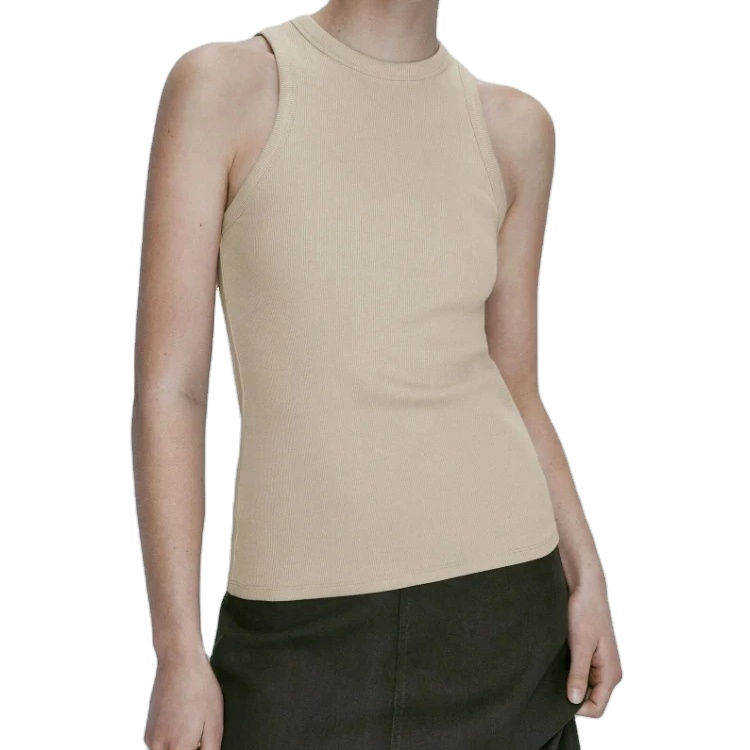 Top corto acanalado de cuello alto con logotipo personalizado, camisetas sin mangas de punto para mujer, camiseta sin mangas de entrenamiento para mujer, ropa deportiva para gimnasio, camisetas sin mangas para mujer