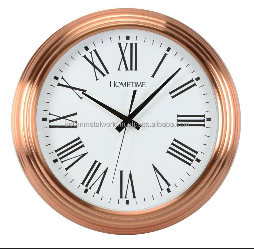 Logotipo personalizado oro rosa acabado Chapado en cobre reloj forma redonda de acero inoxidable Reloj de pared