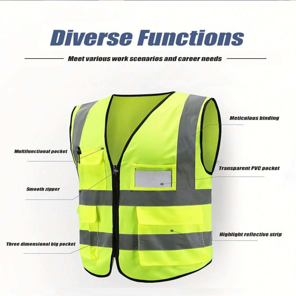Chaleco de Seguridad con Logotipo Personalizado, Chaleco de Seguridad Reflectante con Múltiples Bolsillos y Cremallera, Ropa de Trabajo de Alta Visibilidad, Chaleco de Seguridad para Tráfico