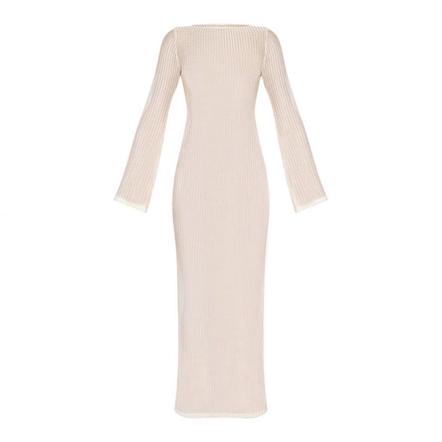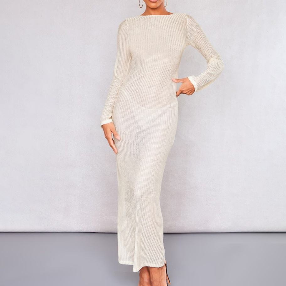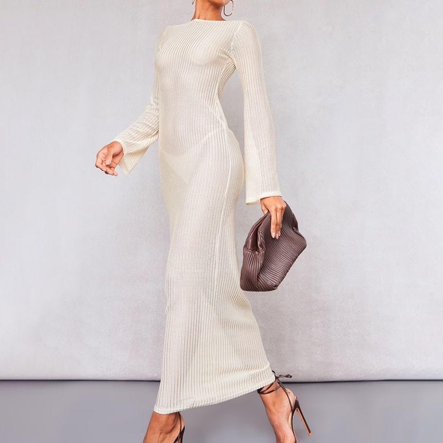 Vestido Maxi de Manga Larga Transparente con Logotipo Personalizado, Vestido Ajustado 2023 para Mujer