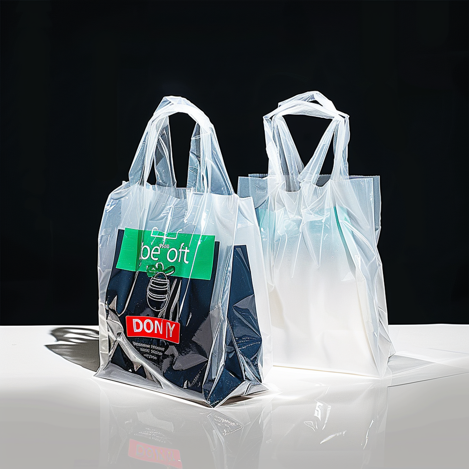 Bolsa de compras de plástico de tamaño de logotipo personalizado con asa de bucle suave diseño personalizado para llevar bolsas para restaurante entrega de comida