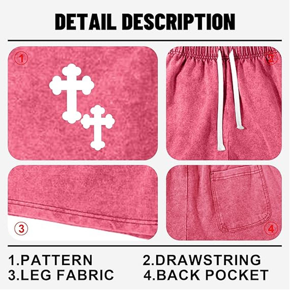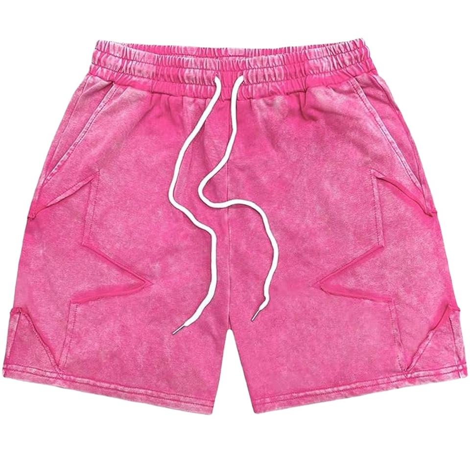 Pantalones Cortos Deportivos para Hombre con Logotipo Personalizado, Color Rosa Veraniego, Estilo Desgastado, Cintura Elástica con Cordón Ajustable, Ropa Urbana