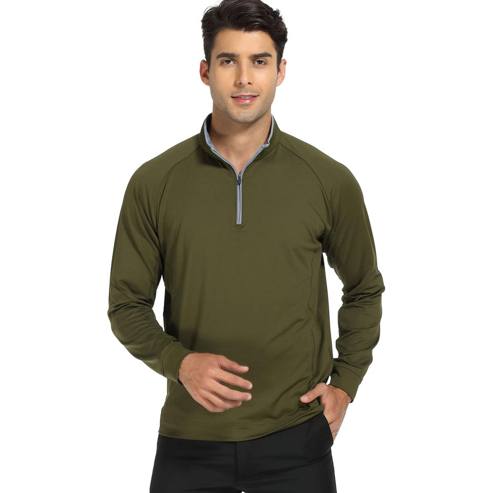 Sudadera de manga larga para hombre con logotipo personalizado, jersey con cremallera 1/4, para rendimiento de Golf, cuello simulado, bordado de otoño