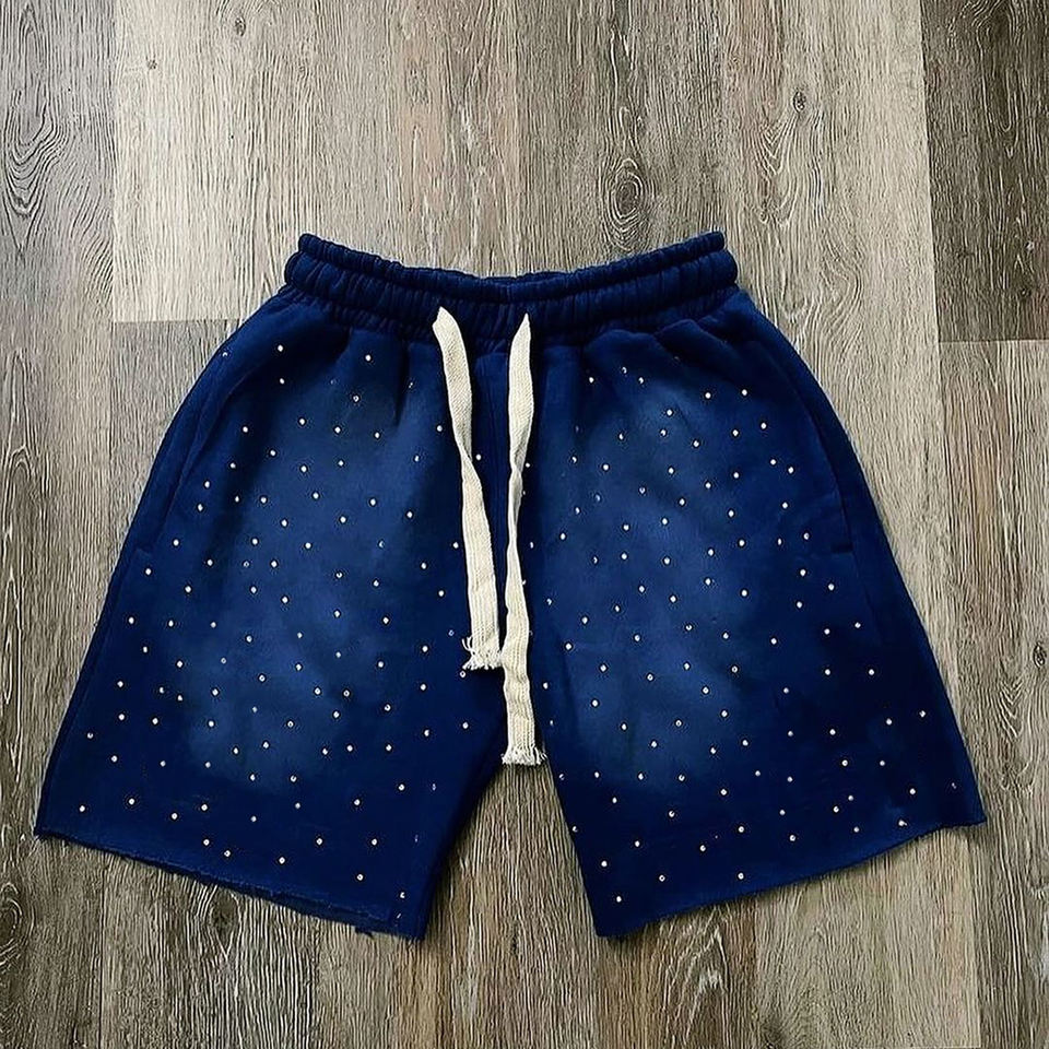 Pantalones cortos hechos a medida con diamantes de imitación para hombre de alta calidad 100% algodón Sun Fade con diamantes de imitación patrón sólido Streetwear Sun Fade Shorts