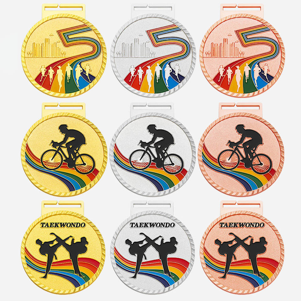 Medalla de Maratón Personalizada de Aleación de Zinc con Acabado Cobre Antiguo, Ecológica, Fundida a Presión, con Impresión de Serigrafía en Color Pantone