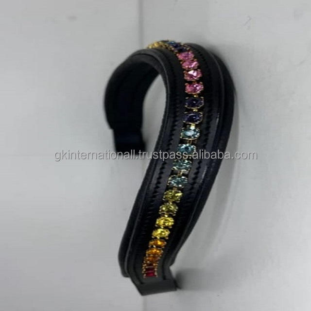 Banda de cuero para cejas de caballo acolchada con canal vacío en todas las formas, con incrustaciones de cristales multicolores, diamantes de imitación, banda para cejas