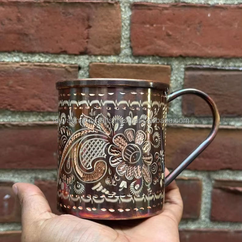 Jarra para Beber con Diseño Martillado, Jarras de Cobre Grabadas Ideales para Tiendas de Mead y Bares de Cerveza