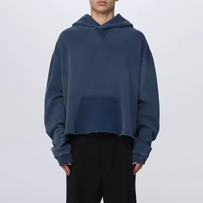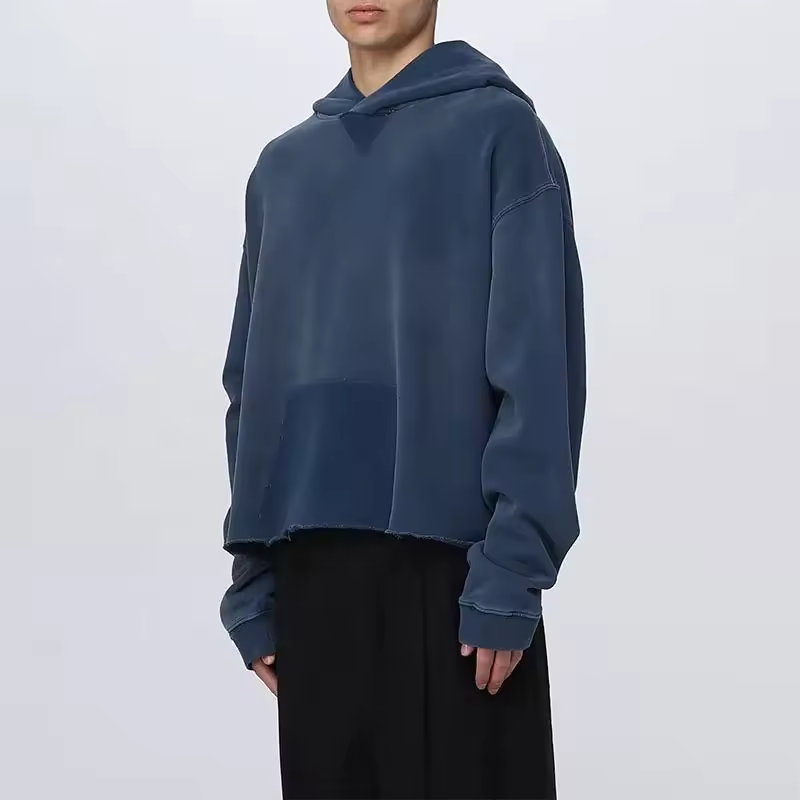 Sudaderas con capucha con dobladillo crudo recortado en blanco de gran tamaño de primavera para hombre personalizadas Sudadera con capucha con borde crudo lavado con Ácido sin bolsillo de canguro