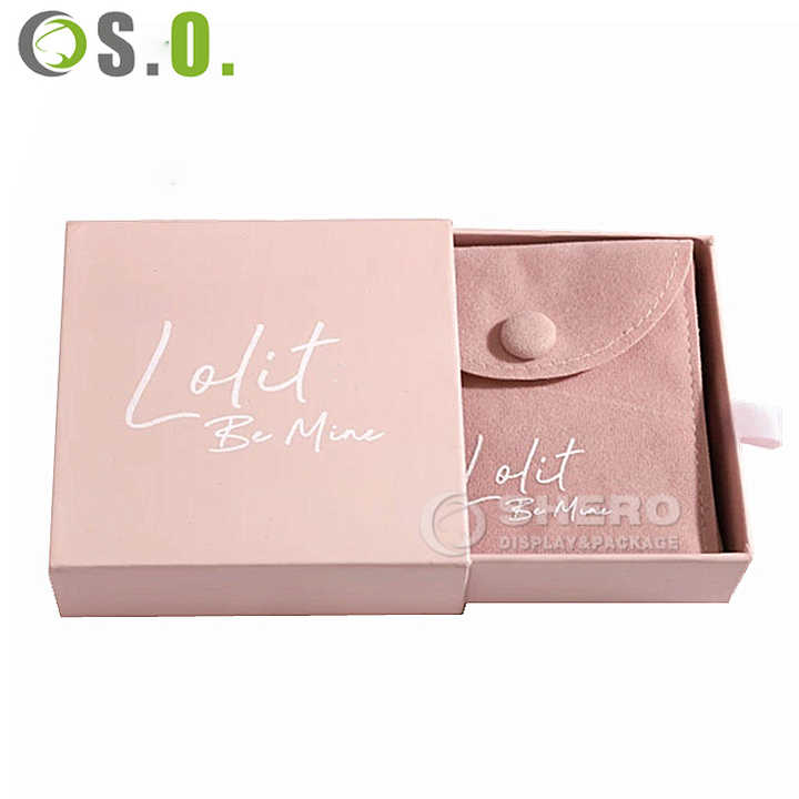 Caja de Joyería Deslizante de Cartón Rígido Rosa Personalizada, Caja de Embalaje para Anillos y Pendientes con Logotipo