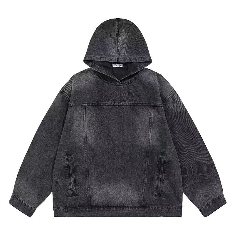 Sudadera con capucha de algodón con estampado de logotipo personalizado sin hilo lavado ácido diseño grueso streetwear heavyweight esencial Denim oversize hombres sudaderas con capucha