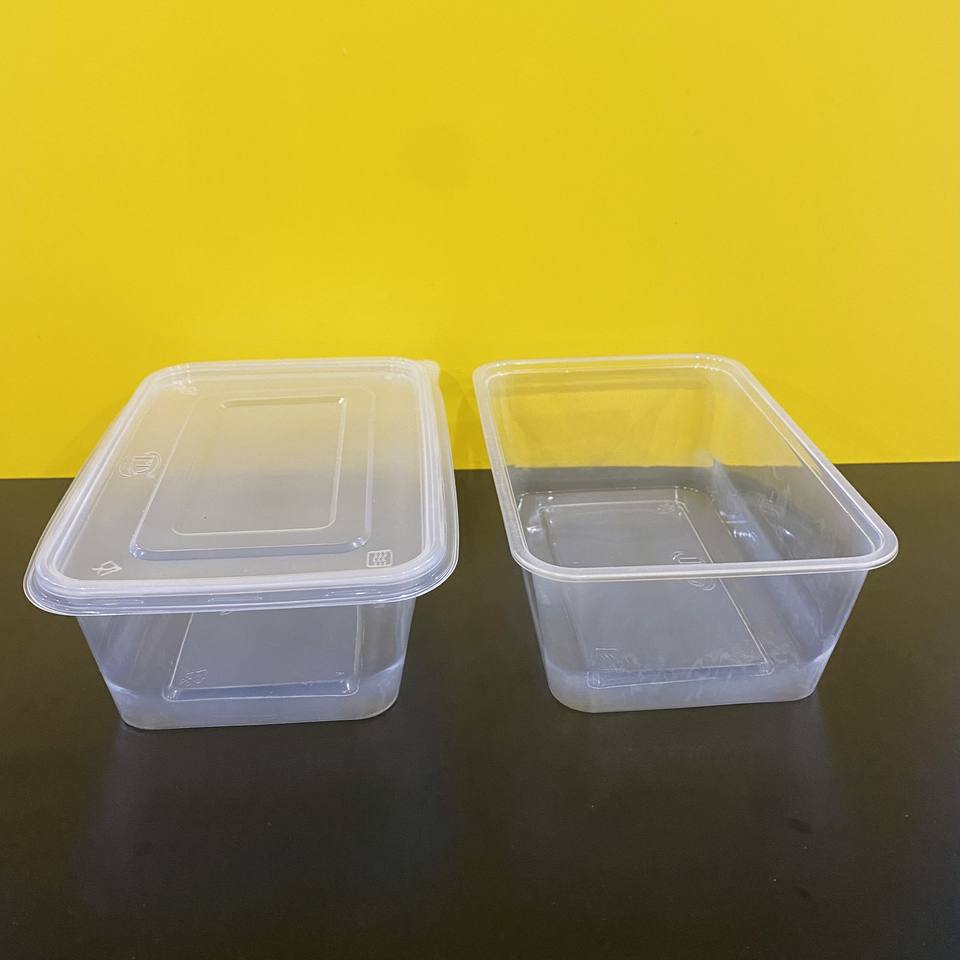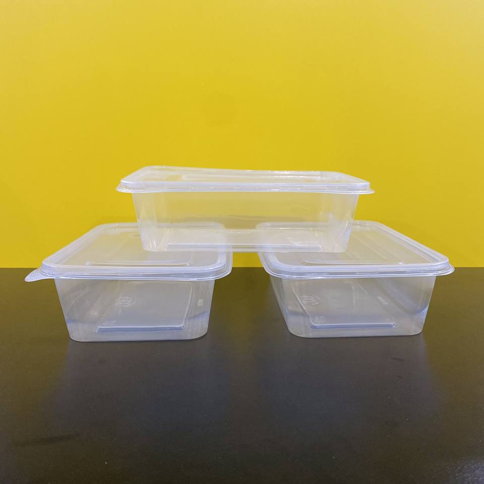 Caja de plástico rectangular desechable transparente con tapa para alimentos/frutas/ensaladas, impresa a medida, de fábrica, buen precio, 550/650 ml