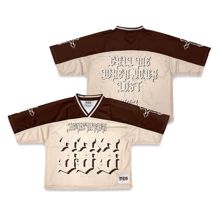 Camiseta extragrande con estampado personalizado, diseño de sublimación, ropa de calle recortada de malla, ropa deportiva clásica de lujo para fútbol, camisetas