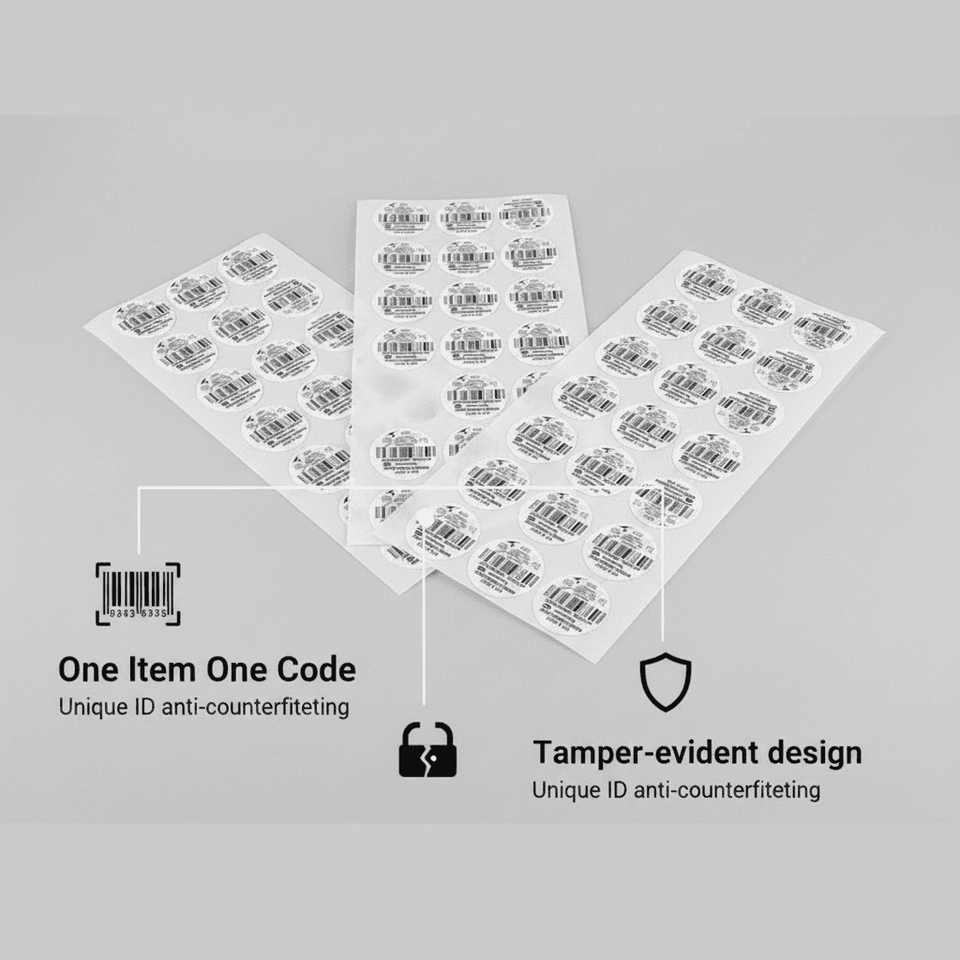 Etiquetas redondas anti-falsificación con código de barras impresas a medida y pegatinas con código QR