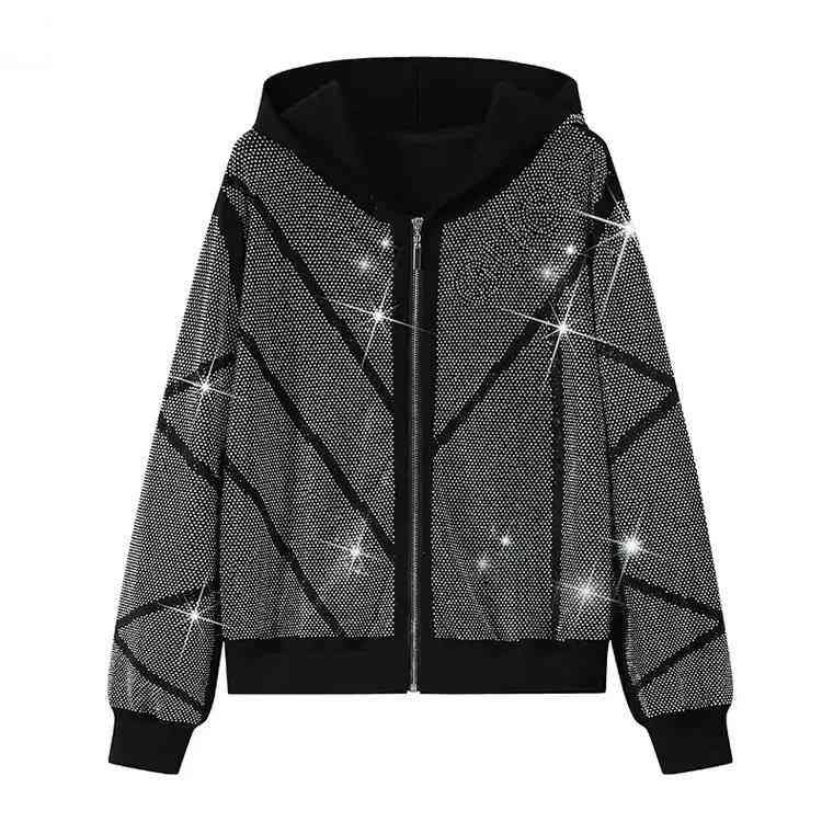 Chándal personalizado con pedrería, tela flexible con brillo cristalino premium y un ajuste moderno y elegante.