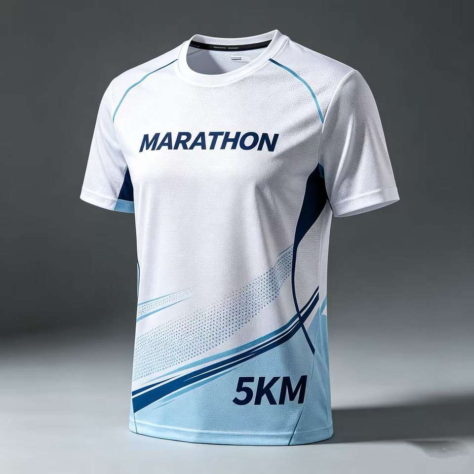 Camisetas personalizadas de poliéster 100% de secado rápido para maratón, eventos deportivos, publicidad, estampado por transferencia térmica, tejido sólido, en blanco.
