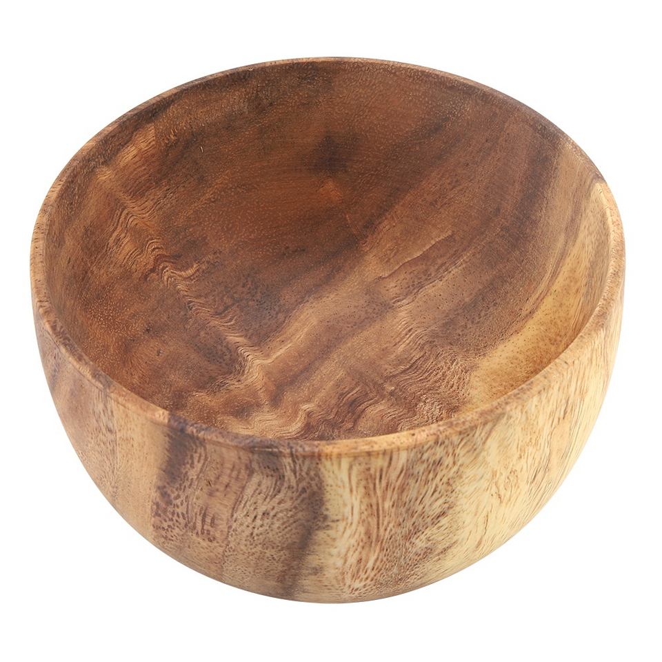 Cuenco de madera para mezclar ensaladas de cocina personalizado al por mayor tamaños pequeños y grandes con madera de acacia gruesa para verduras y frutas