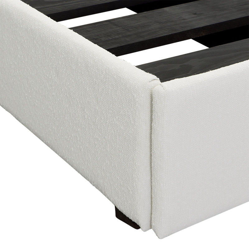 Cama de madera de teca maciza personalizada de diseño moderno de lujo con tela suave y cabecero de espuma para muebles de dormitorio