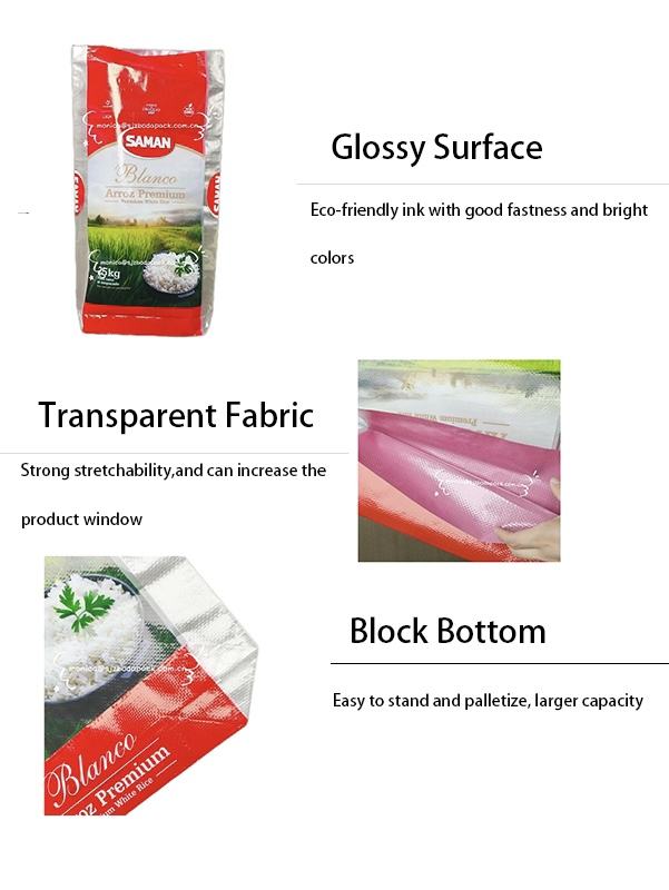 Saco de Arroz Tejido Cuadrado Personalizado de 25, 49, 50 Kilos, Saco Tejido de Polipropileno Laminado Bopp para Envasado de Granos Agrícolas y Trigo