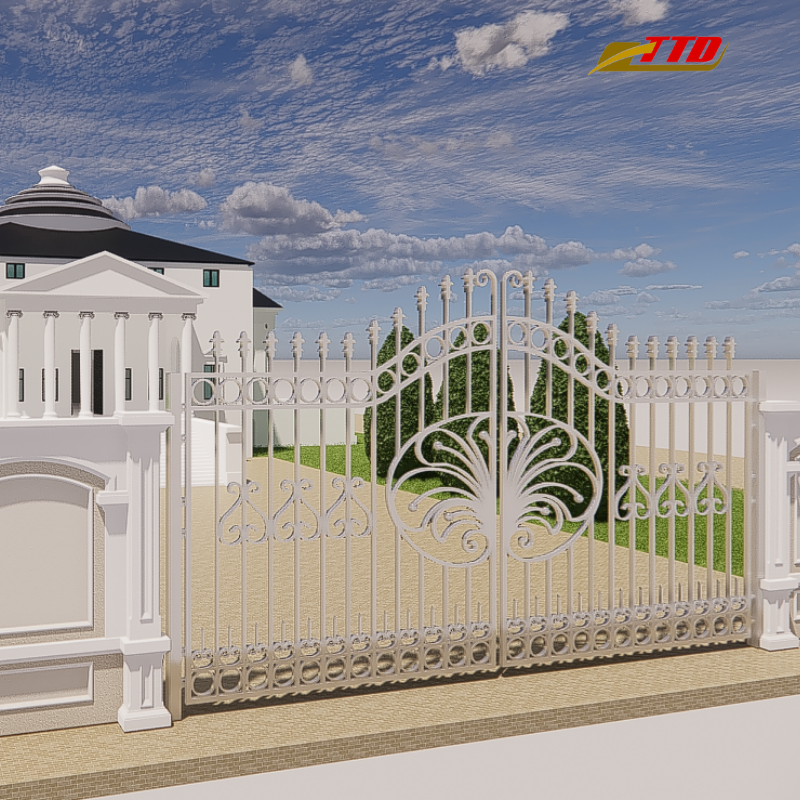Puerta de entrada de hierro forjado personalizada con diseño elegante y estructura de metal duradera para entradas modernas y clásicas
