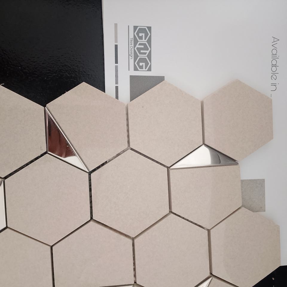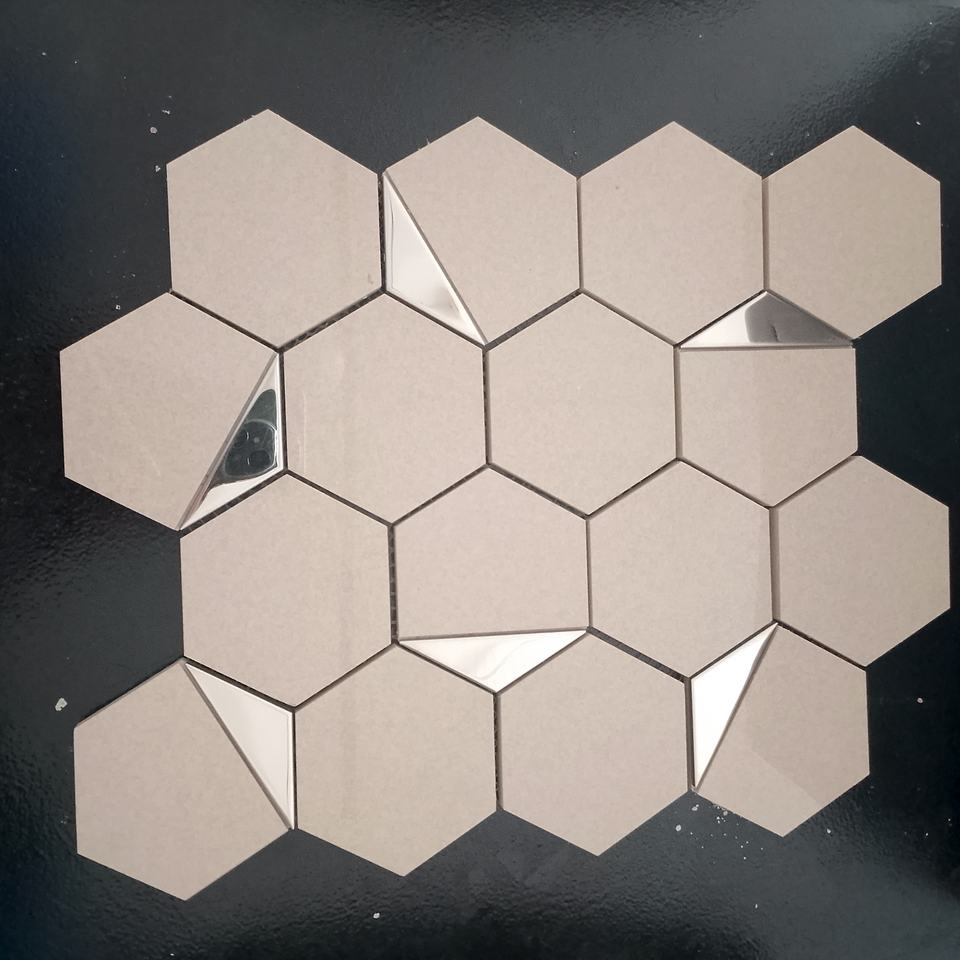 CustomTiles 73mm Hexágono Plata PVD CeramicFull Body Azulejos vitrificados Brillante para la construcción de elevaciones Paredes compuestas Villa