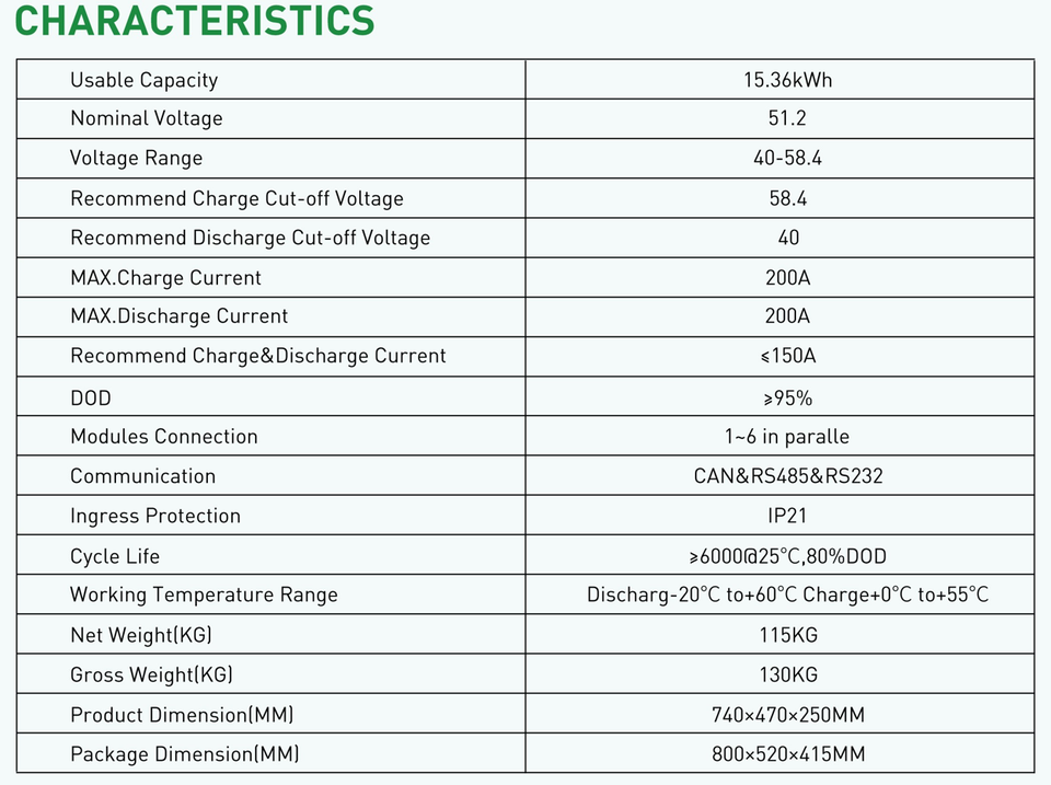 Vida del ciclo:6000 ciclo @ 80% DOD