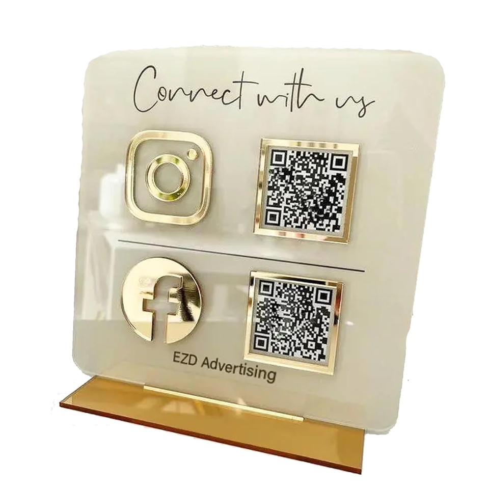 Exhibidor de Acrílico Personalizable con Código QR para Mostrar Iconos de Redes Sociales con Estilo, Letrero de Instagram y Facebook