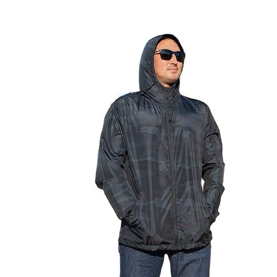 Chaqueta Cortavientos Impermeable y Transpirable con Capucha, Ligera, Unisex, Personalizable, con Cierre, de Tela PU Lisa, Cuello Alto
