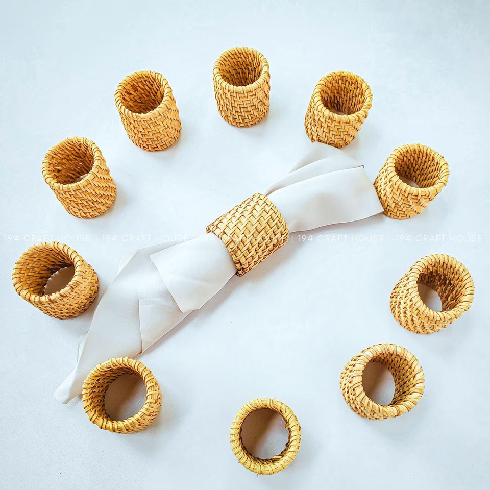 Anillos de Servilleta Redondos de Ratán Estilo Boho, Juego de 6 Piezas, Personalizables, para Guardar Papel de Cocina, Artículos de Mesa al Precio Más Bajo