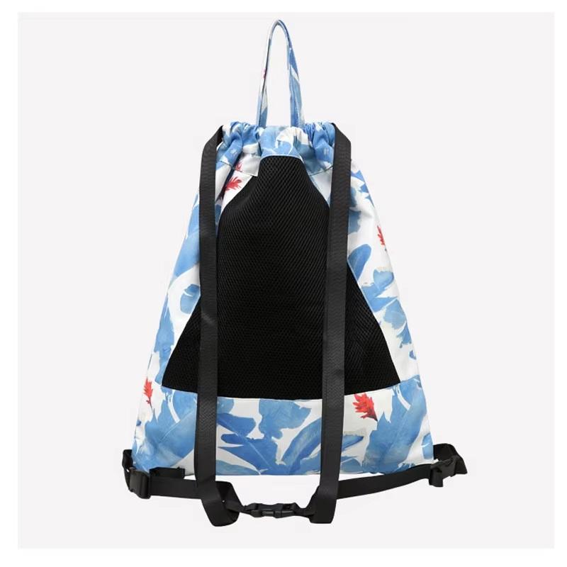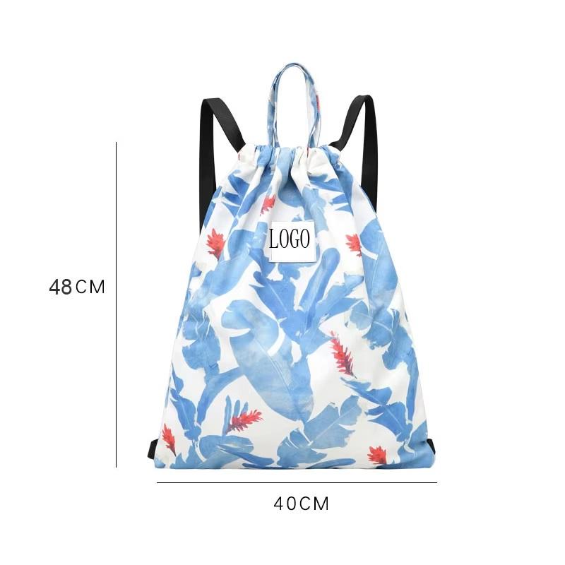 Bolsa de lona de gimnasio ecológica impermeable con estampado completo personalizado, mochila de gimnasio y mochilas escolares promocionales de poliéster personalizadas