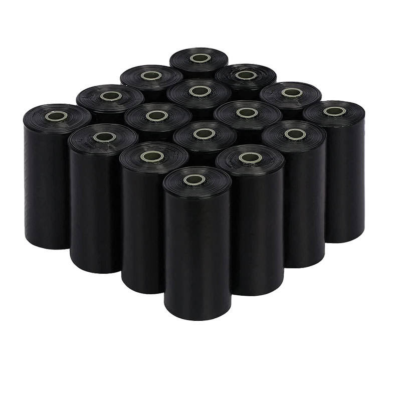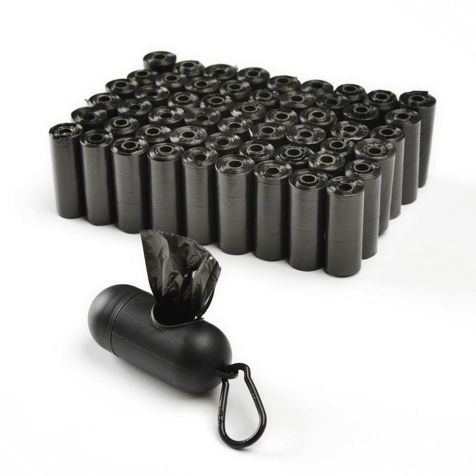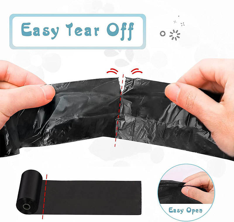 Bolsa para excrementos de perro negra de doble capa personalizada, ecológica, con cordón ajustable