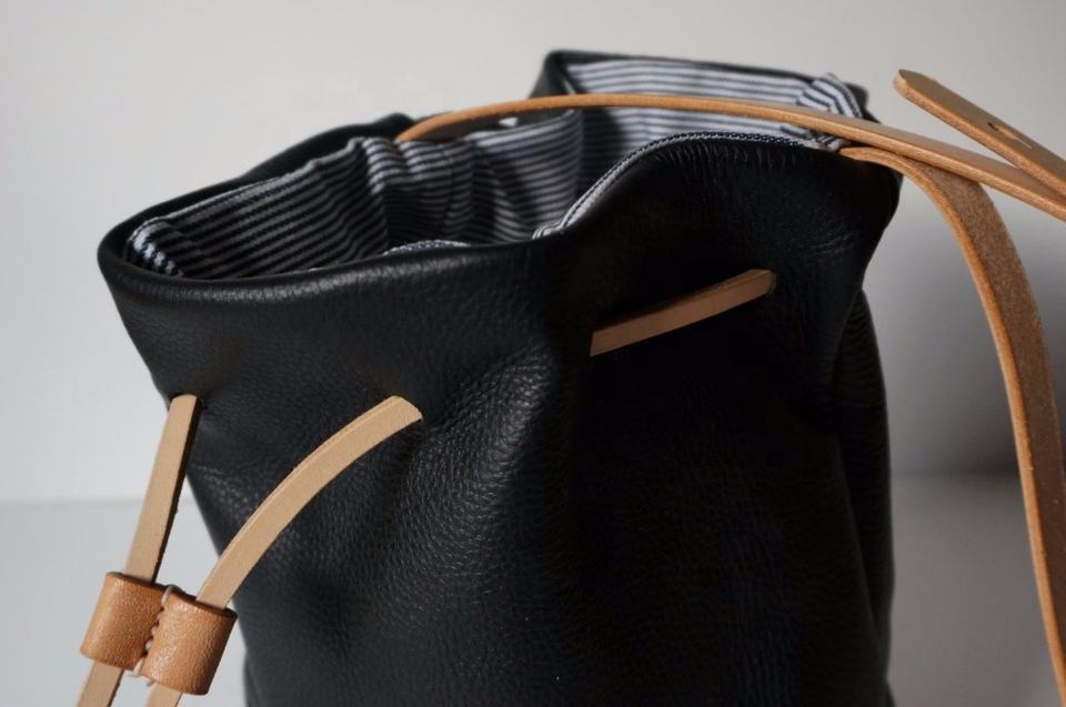 Bolso de Hombro Mediano Tipo Cubo de Cuero Genuino Personalizado con Cierre de Cordón y Dos Correas para Mujer, Modelo MKL-2001