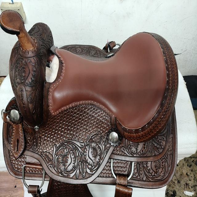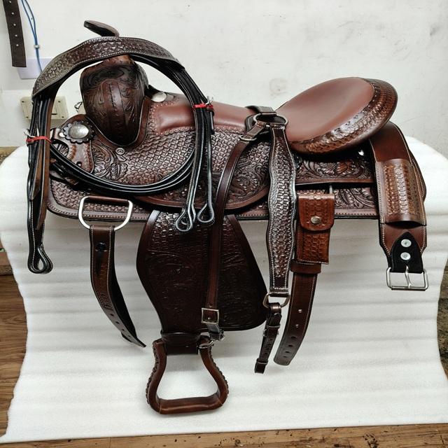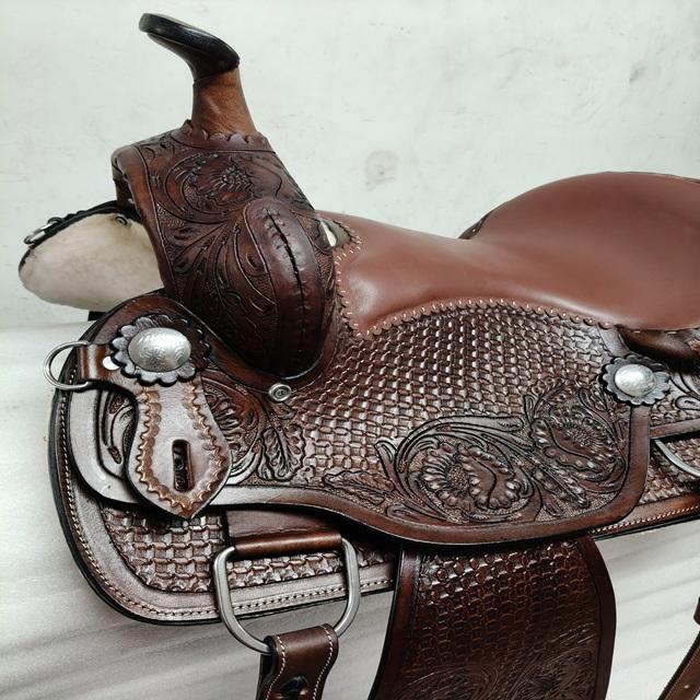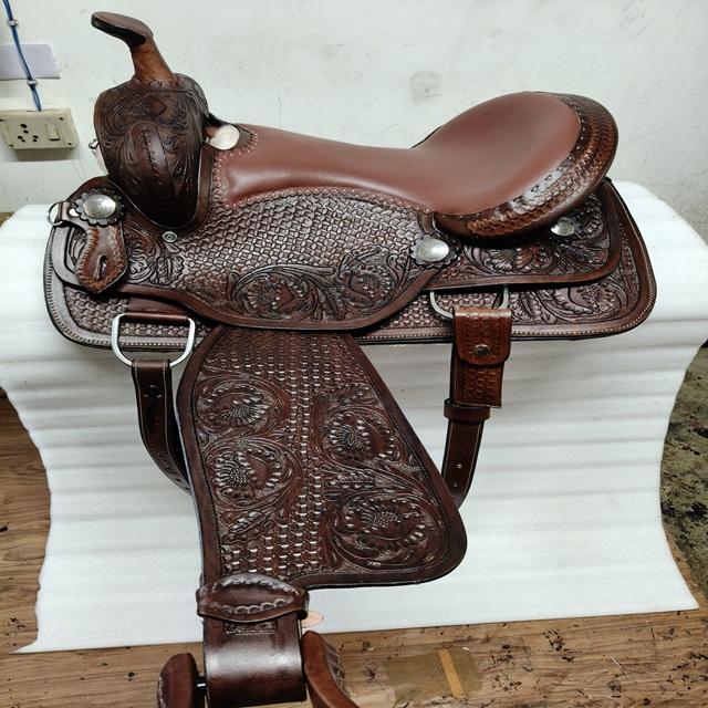 Silla de Montar Occidental Personalizada de Alta Calidad – Silla de Cuero Duradera para Caballo con Asiento Profundo y Conchos Decorativos de Adeefa