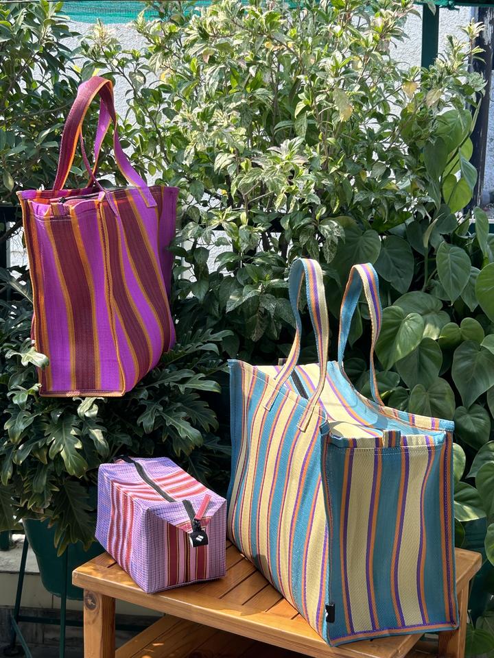 Nombre del producto:Bolsa cosmética rayada de nylon reciclada del patrón