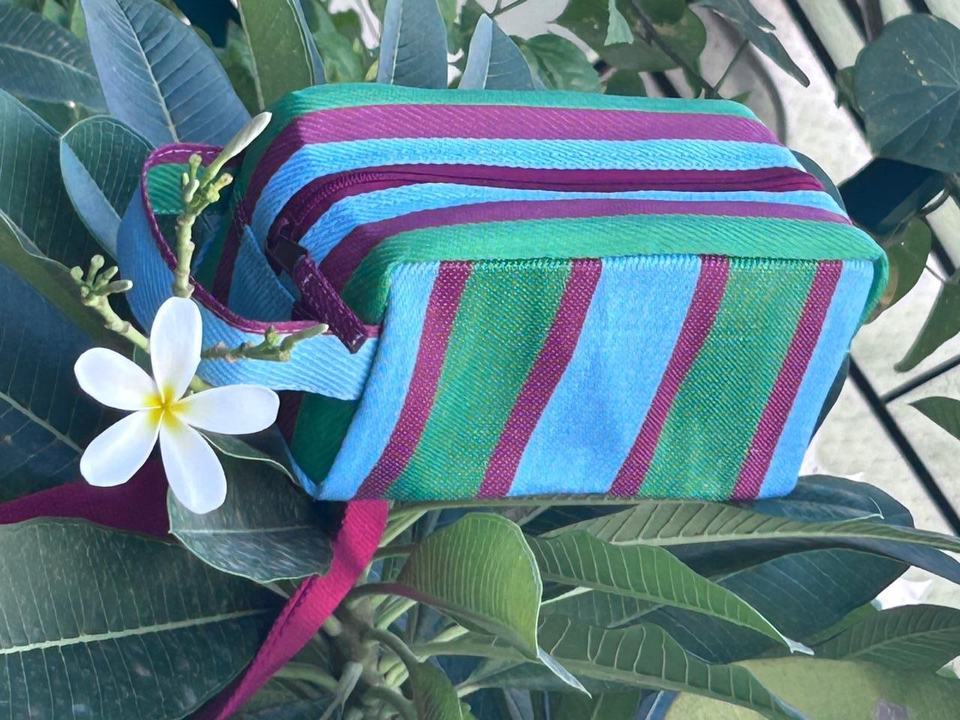 Product name:Recycled Nylon Striped Pattern Cosmetic Pouch