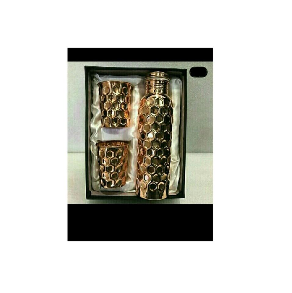 Botella de agua de pared interior chapada en cobre personalizada, con juego de vidrio, martillo, chapado en oro, acabado y tamaño de alta calidad
