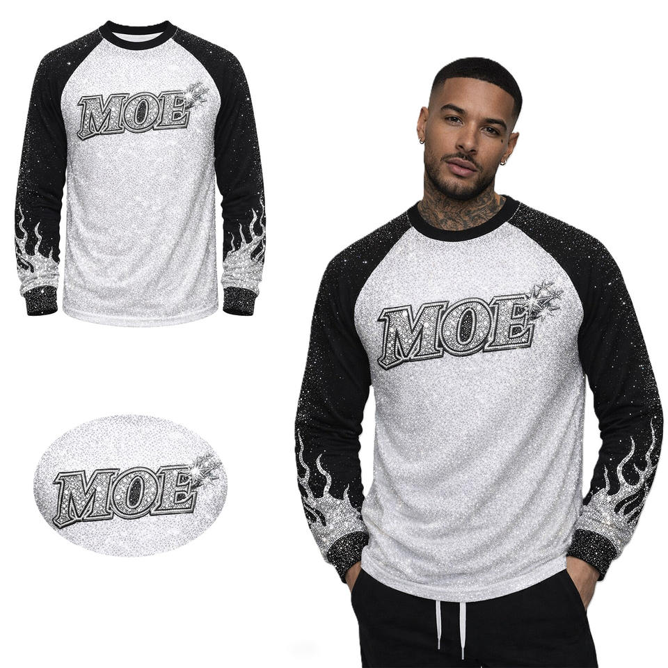 Camiseta de Manga Larga para Hombre, Personalizada con Pedrería, 100% Algodón, Tejido Transpirable, Fabricante OEM al por Mayor
